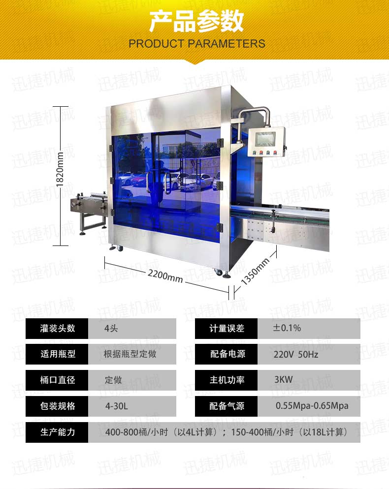 機油灌裝機適用于對4kg-25kg汽車用品類產(chǎn)品:潤滑油、防凍液、車用尿素等液體灌裝。自動完成計數(shù)進瓶、計重量灌裝、輸送出瓶等一系列操作。