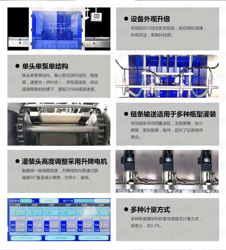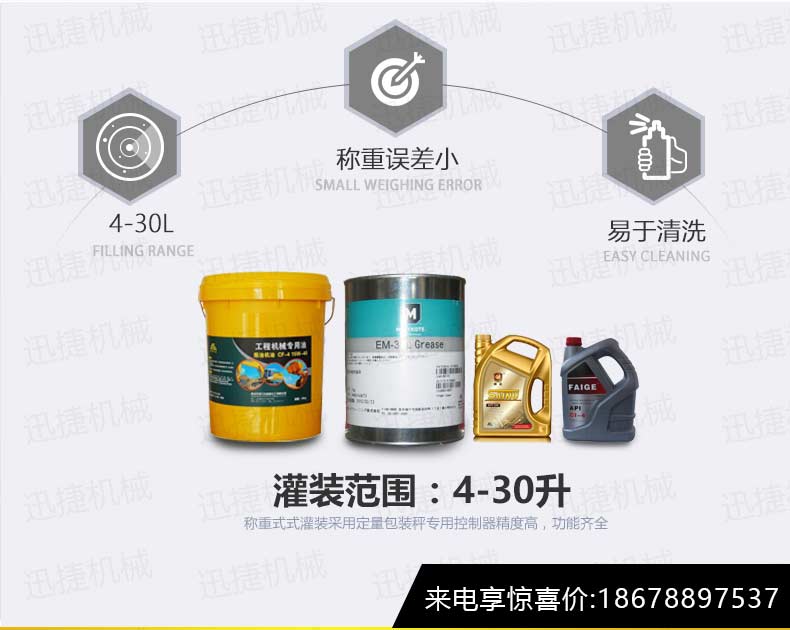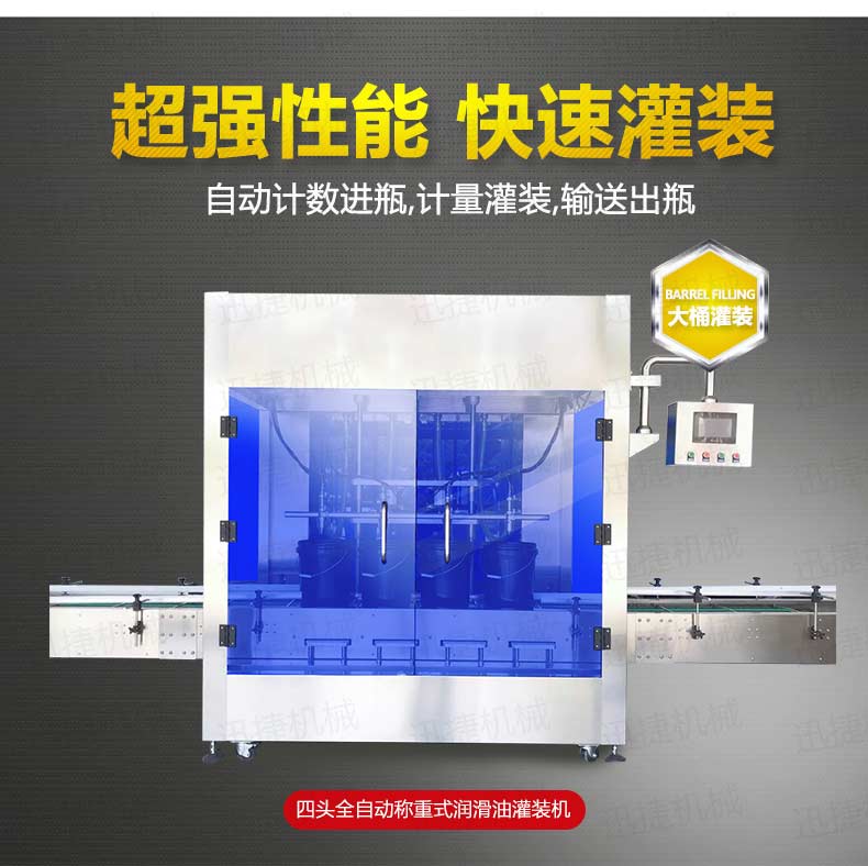 機油灌裝機適用于對4kg-25kg汽車用品類產(chǎn)品:潤滑油、防凍液、車用尿素等液體灌裝。自動完成計數(shù)進瓶、計重量灌裝、輸送出瓶等一系列操作。 特別適用于潤滑油、水劑、食用油的定量灌裝,是食品,醫(yī)藥,化妝品以及精細化工等行業(yè)的理想灌裝機。本機采用可編程控制器(PLC)、高速工控組態(tài)軟件進行實時監(jiān)控的控制,使用調節(jié)方便。整機按GMP標準要求制作,各管路連接采用快裝方式,拆卸清洗方便,與物料接觸部位及外露部位均采用不銹鋼制造。整機安全、環(huán)保、安全、美觀、能適應各種不同環(huán)境工作。