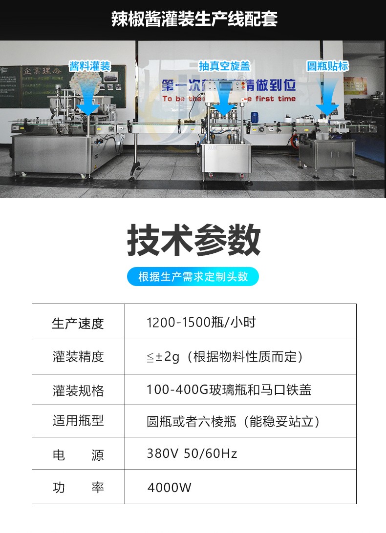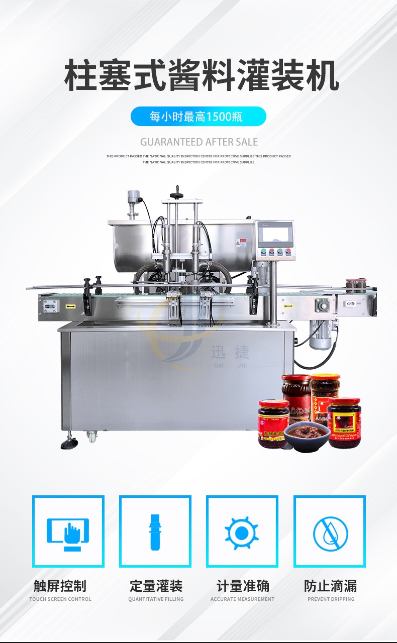 全自動雙頭醬料灌裝機兼容6種瓶型,容量范圍內(nèi)可兼容多種瓶型的灌裝,一鍵式操作,開機即能使用。更換瓶型無需更換配件。