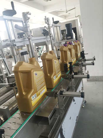 潤滑油灌裝旋蓋一體機為活塞式計量方式。計量范圍為1升-5升,離合式旋蓋結(jié)構(gòu),確保旋蓋合格率高,不傷蓋。本設(shè)備為灌裝旋蓋一體機