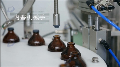 內(nèi)塞機械手將內(nèi)塞吸起來,然后精準壓進瓶口