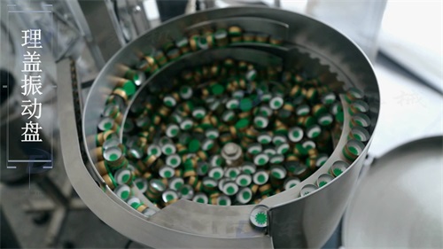 理蓋振動盤將蓋子進行整理,送入滑道,后滑入掛蓋頭