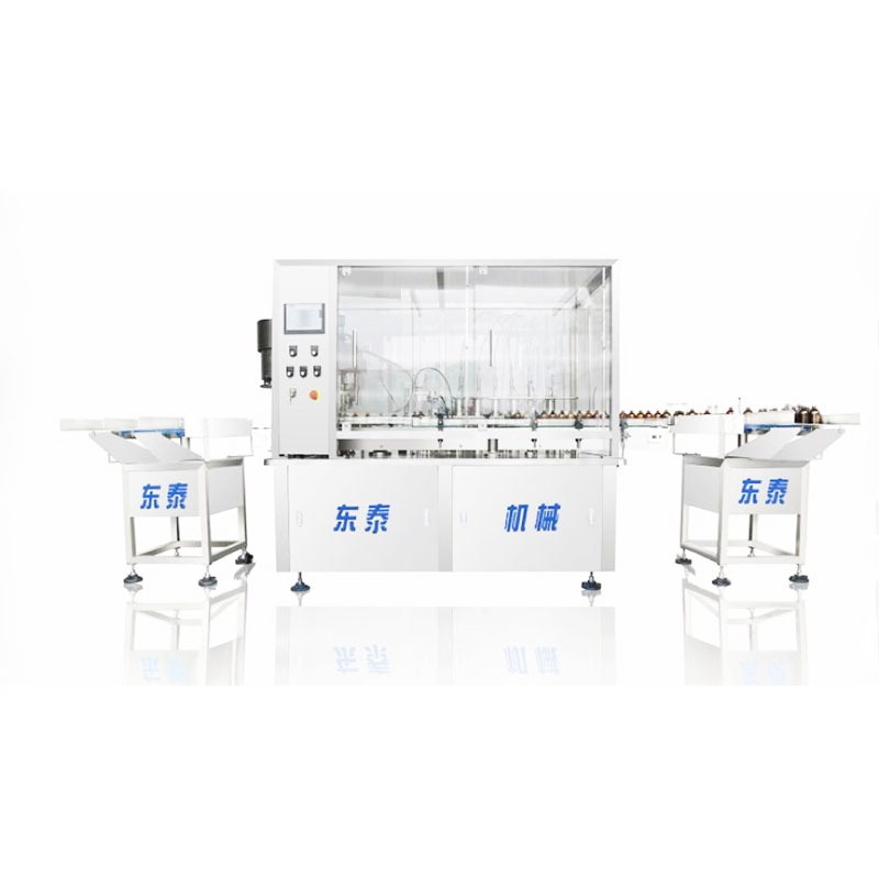 西林瓶(penicillin bottle),又稱:硼硅玻璃或鈉鈣玻璃管制(模制)注射劑瓶,是一種膠塞封口的小瓶子。早期盤尼西林多用其盛裝,故名西林瓶。西林瓶灌裝的多為液體,藥品、營(yíng)養(yǎng)液等,針對(duì)這種小瓶型液體灌裝,機(jī)械廠家制造出小計(jì)量液體灌裝機(jī)來(lái)幫助液體灌裝的灌裝和生產(chǎn),小計(jì)量液體灌裝機(jī)也叫作西林瓶灌裝旋蓋一體機(jī),小計(jì)量液體灌裝機(jī)屬于聯(lián)動(dòng)機(jī),其工作步驟包含了理瓶、灌裝、理蓋。掛蓋。壓蓋、旋蓋的步驟,滿足了液體包裝的大部分步驟,那么液體灌裝機(jī)該如何選擇呢?